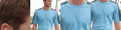 • Three contrast color stripes on shoulders, sleeves