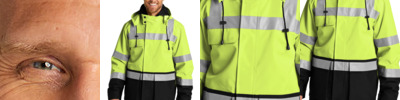 This warm performance soft shell combines superior weather protection with the highest class of visibility.
