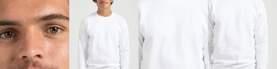 - Spandex reinforced ribbed crewneck collar